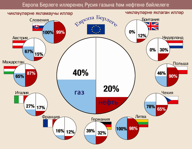 Эшләр шулай дәвам итсә, 2030 елга Европа Берлеге газның инде 60% Русиядән алачак, ди белгеч. Эш шунда, Европа Берлеге Русиягә килгәндә әле дә бүленгән хәлдә, аның бу мәсьәләдә уртак сәясәте юк.