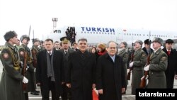 Төркия президентын һәм аны озатып баручы төркемне Татарстан президенты, хөкүмәт башлыгы, парламент рәисе һәм башка рәсми кешеләр каршы алды.