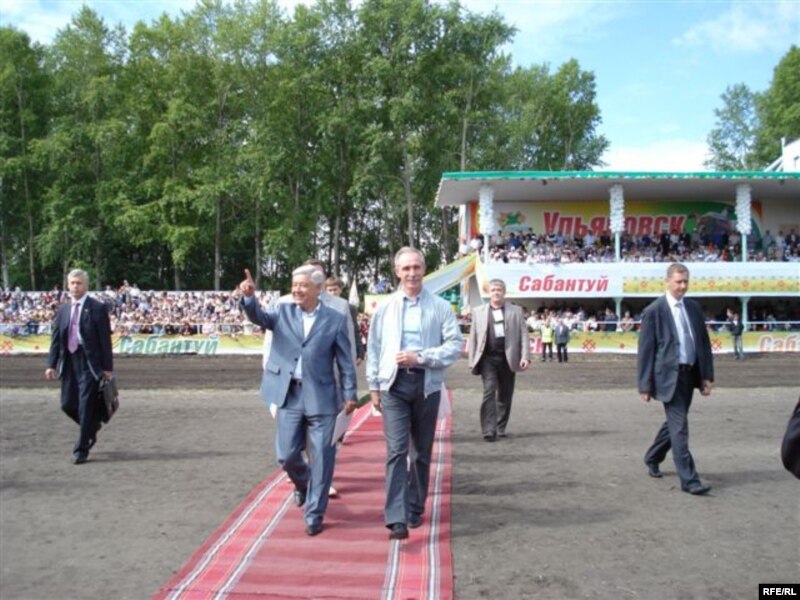 Татарстан исеменнән республиканың Дәүләт Шурасы рәисе Фәрит Мөхәммәтшин сүз тотты. Ул Татарстанның президенты Миңтимер Шәймиев тәбриген дә җиткерде. Фәрит әфәнде Татарстан исеменнән сәхнәдәге барча, диярлек, түрәләргә дә төбәтәй һәм яшел чапаннар бүләк итте. Ә өлкә хакимиятенә Казан Кремленең зиннәтле рәсемен дә тапшырды.