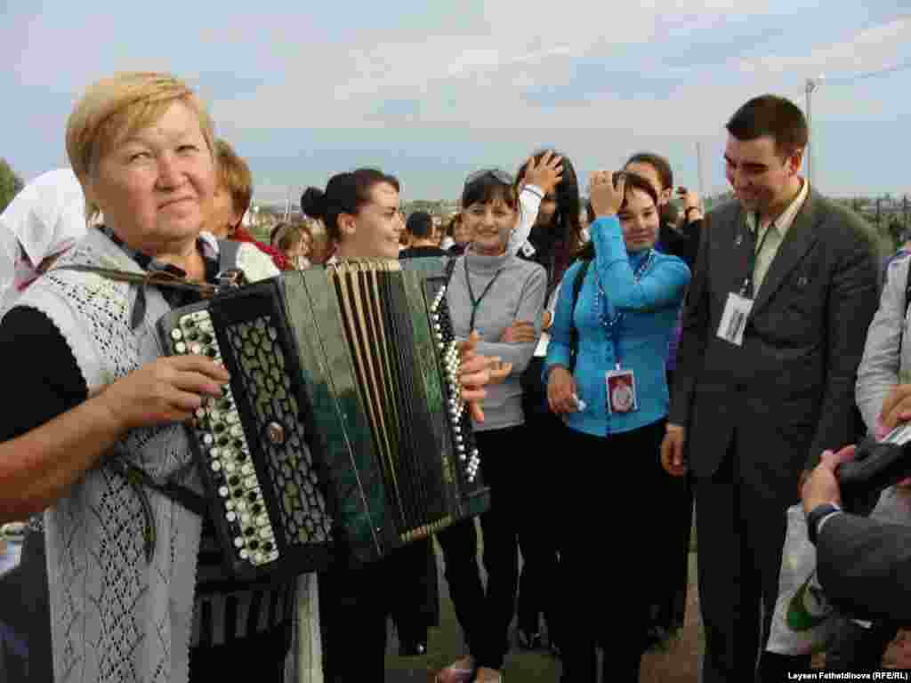 Татар яшьләре Кырлайда Тукай һәйкәле янында фотога төшәргә чират тора
