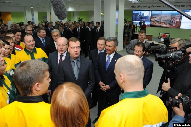 Көндезге сәгать 1 тирәсендә Дмитрий Медведев Түбән Камада булды. Анда ул "ТАНЕКО" нефть эшкәртү корылышын эшләтеп җибәрүдә катнашты. Аерым алганда Русия президенты, компьютердагы программада бер төймәгә басып, ягулык суырту җайланмасын кабызды.