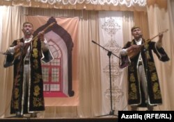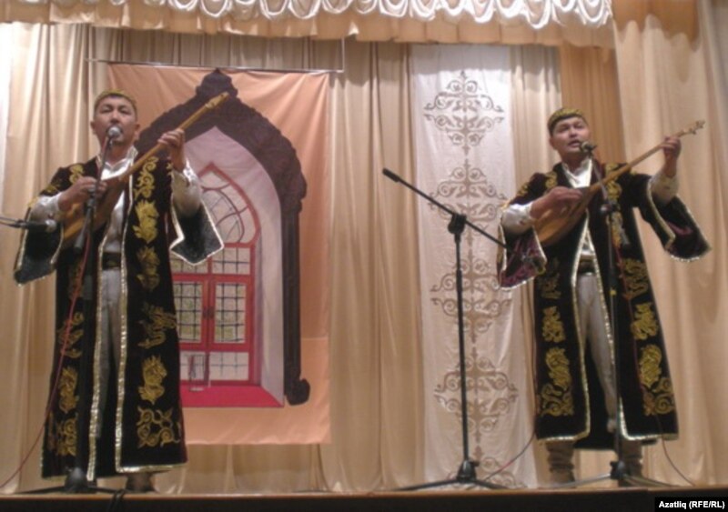 Алтай республикасының “Алтай Край” төркеме җитәкчесе Урмат Ынтаеев концерт барышында “Осталык дәресе” биреп, тамак белән җырлау ысуллары күрсәтте.