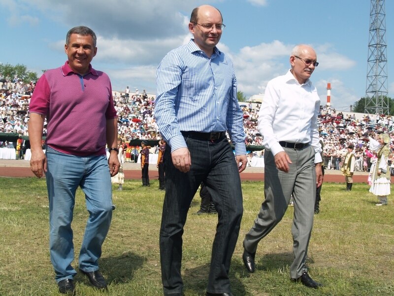 Татарстан президенты Рөстәм Миңнеханов белән Башкортстан президенты Рөстәм Хәмитовның федераль Сабан туена килүе татар-башкорт җәмәгатьчелеге өчен зур вакыйга булды. Башкортстаннар президентлар турында “Ике Рөстәм килеп төште Мишаринга кунакка, Алла бирсә, сынатмабыз Путин патша барында” дигән җыр да әзерләп куйган иде.