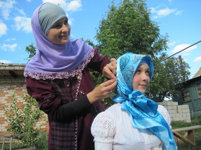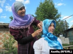 Мәсәлән,тәрбияче Рәмилә Абдуллова кечерәкләрне яулык бәйләргә өйрәтә. Яулыкта йөрү – кызлар өчен оештырылган мөселман аланының төп шарты.