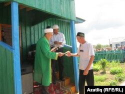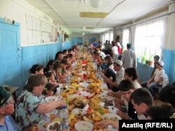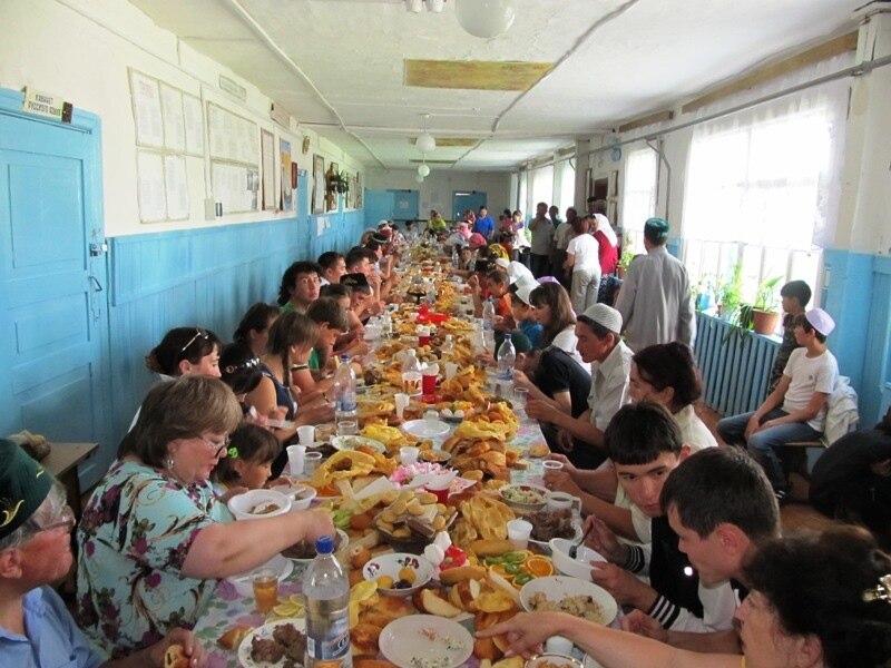 Намаздан соң барсы да мәктәптә әзерләнгән аш өстәленә чакырылды. Аш-су әзерләүдә авылның бер генә хуҗабикәсе дә катнашмый калмагандыр. Ризыкны алар мул итеп әзерләгән иделәр. Сый-хөрмәт бар кешегә дә җитәрлек булды.