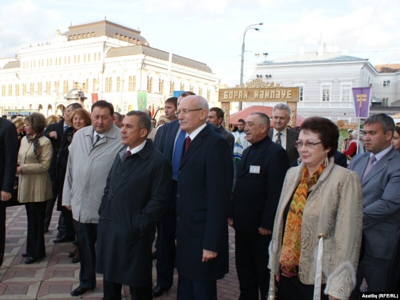 Кичке сәгать бишкә халык иҗаты мәйданчыгына Рөстәм Миңнеханов һәм Рөстәм Хәмитов һәм башка җитәкчеләр килде. Президентларны озатып йөрүче делегациядә Башкортстан һәм Татарстан премьер-министр урынбасарлары Зөһрә Рәхмәтуллина һәм Зилә Вәлиева, Татарстан мәдәният министры Айрат Сибагәтуллин, Башкортстан мәдәният министры вазифаларын башкаручы Камилә Дәүләтова бар иде.