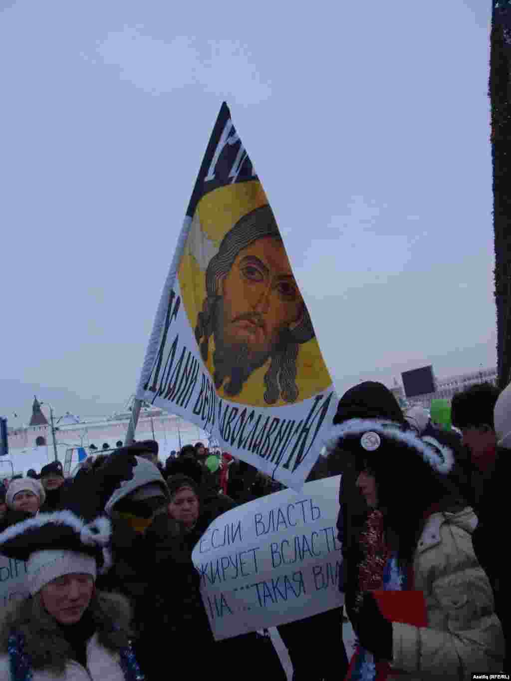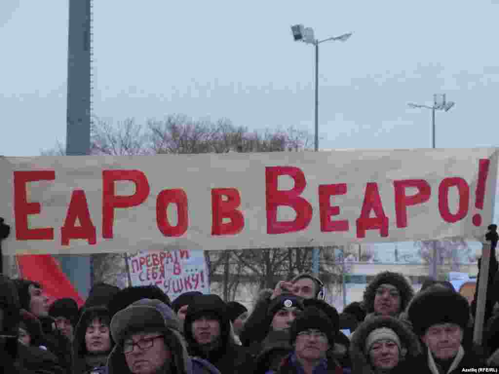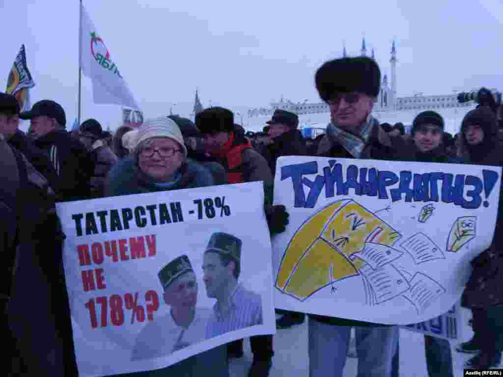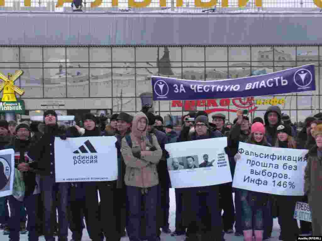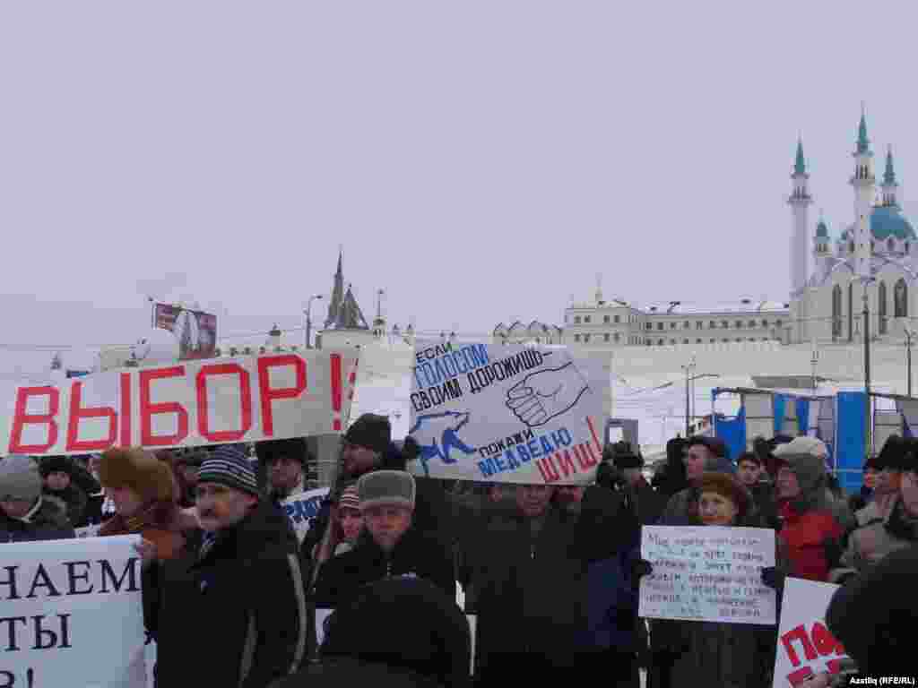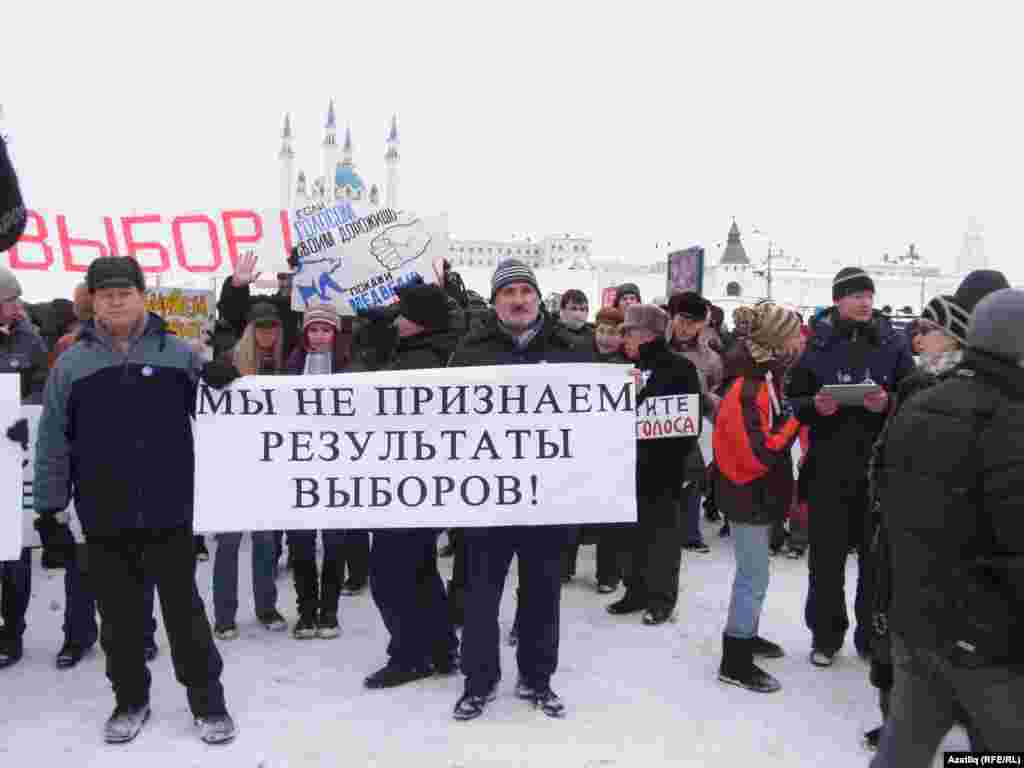Шимбә көнне Казанның Меңъеллык мәйданында гаделсез сайлауга каршы протест чарасы үтте. "Яблоко" һәм коммунистлар фиркасе оештырган чарада бернчә йөз кеше катнашты.