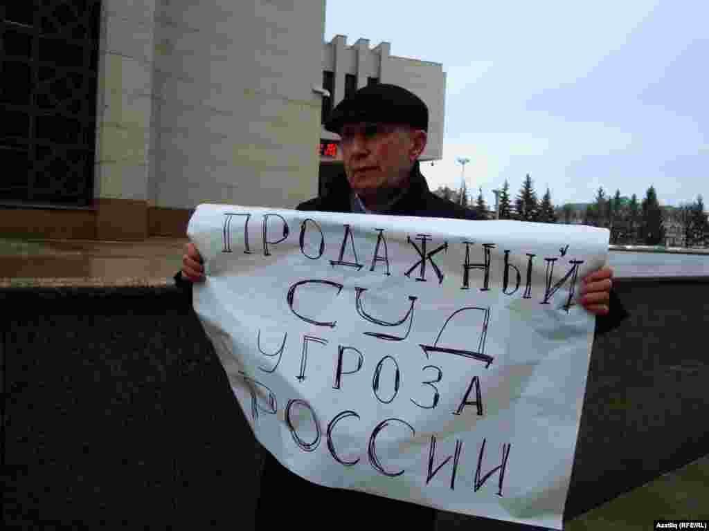 Алар бер сәгать буена Татарстандагы полиция, мәхкәмә, тикшерү комитеты эшчәнлегенә карата төрле эчтәлекле таләпләр язылган шигарьләр күтәреп торды.