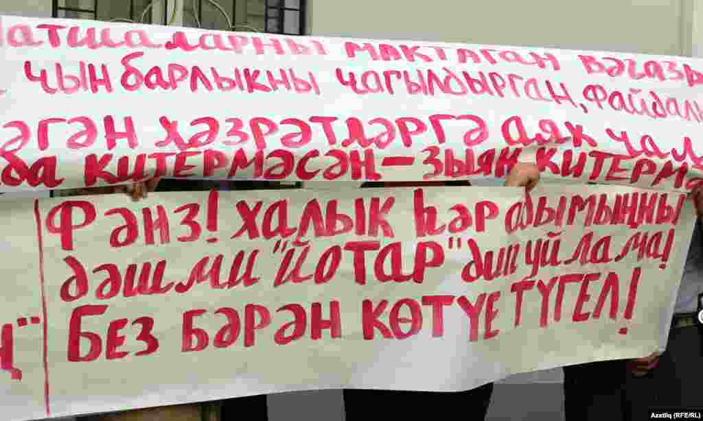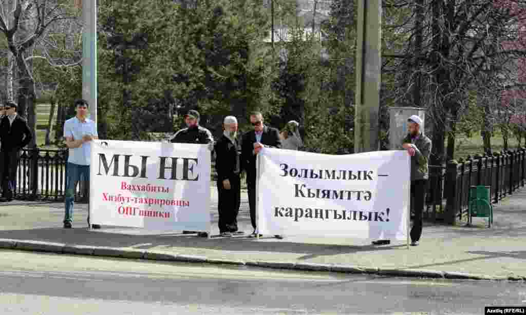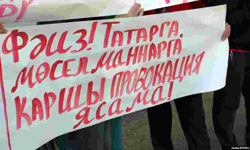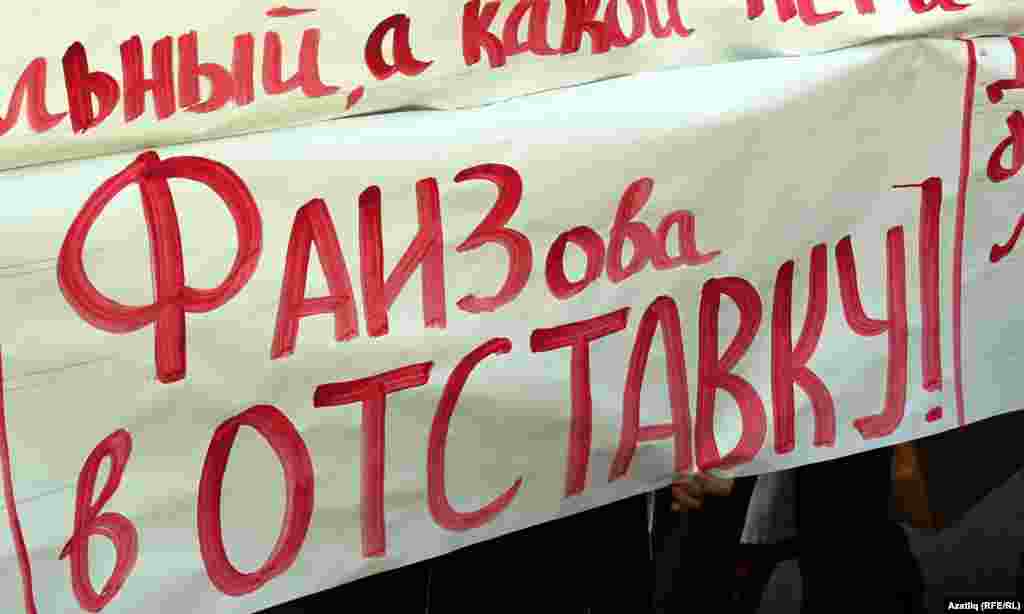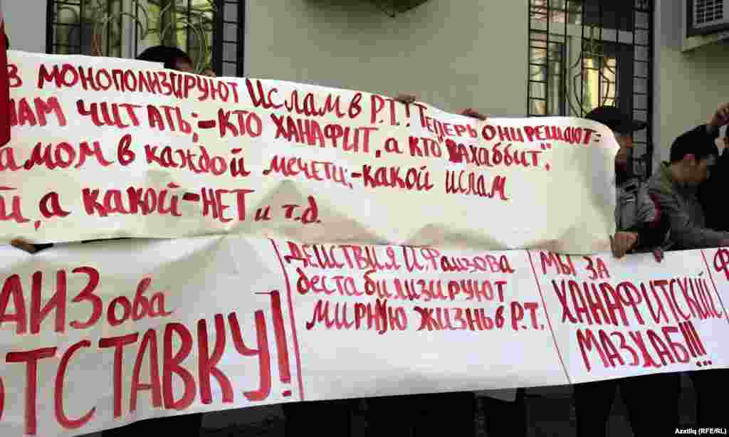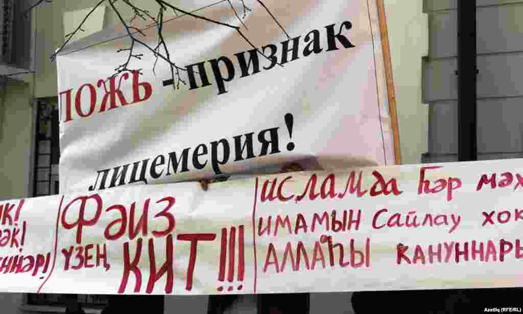 Казанда Татарстан мөселманнарының диния идарәсе бинасы каршында мөфти Илдус Фәизгә каршы пикет узды. Күп кенә шигарьләр күтәреп чыккан мөселманнарның төп таләбе – мөфтинең вазифасыннан китүе иде. Апрель башында Илдус Фәиз “Кол Шәриф” мәчете имамы Рамил Юнысны вазифасыннан алып үзен имам дип игълан иткәннән соң, мөселманнарның мөфтигә карата ризасызлыгы кисәк көчәеп китте. Мөселманнар басымы астында Илдус Фәиз әлеге карарыннан чигенергә мәҗбүр булды. [Рамил Сафин фотолары]
