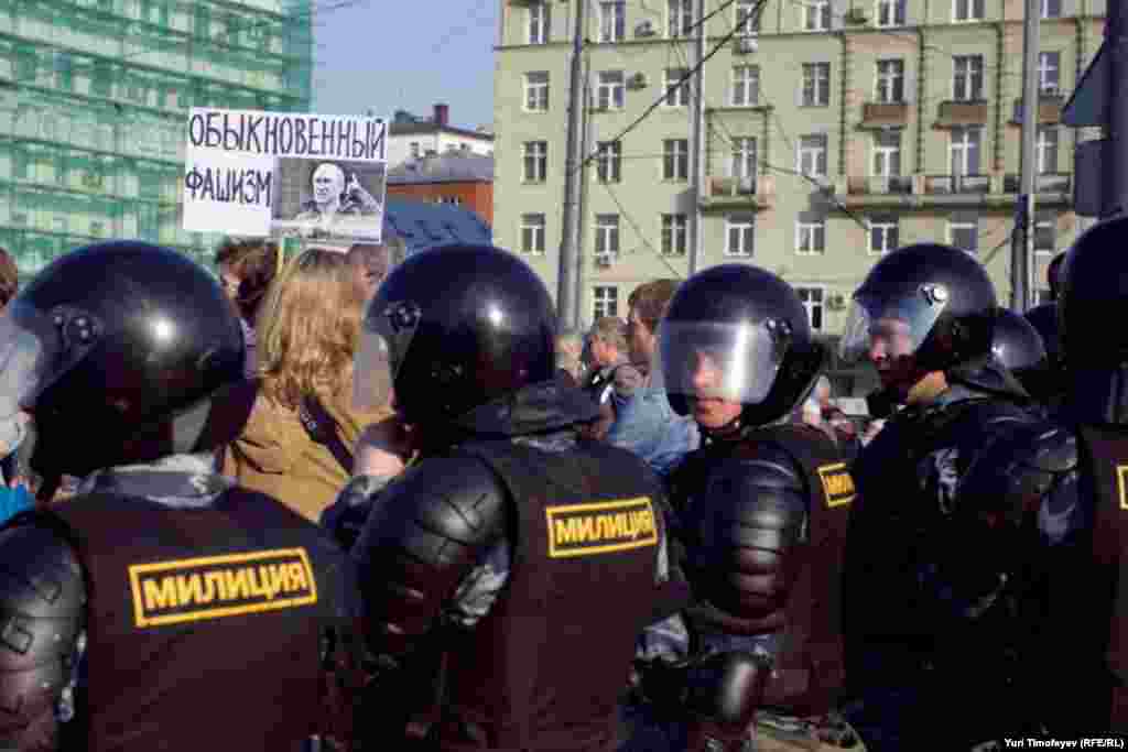 Мәскәүдә оппозициянең зур митингы узарга тиеш булган Сазлык мәйданы янында протест белдерүчеләр белән полиция бәрелеште.