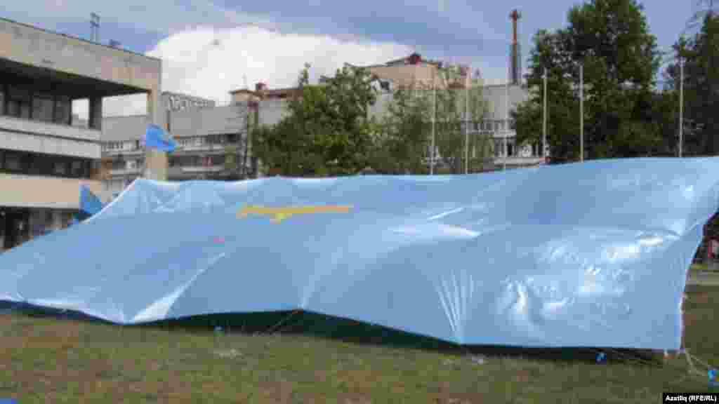 Судакта бер милләпәрвәр 5х3 метр зурлыктагы байракны Бахаташ тавы башына элеп куйды.