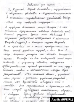 Кудакаев төрмәдә аңа басым ясалуга зарланып хат язган. Рус телендә язылган бу хатның эчтәлеге түбәндәгечә.
