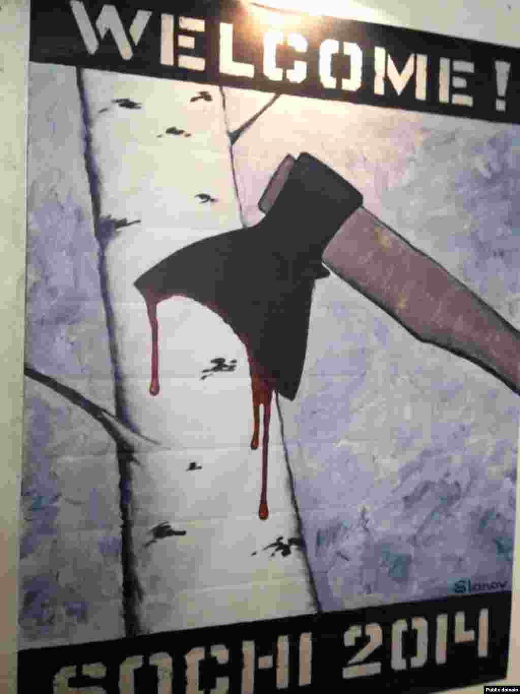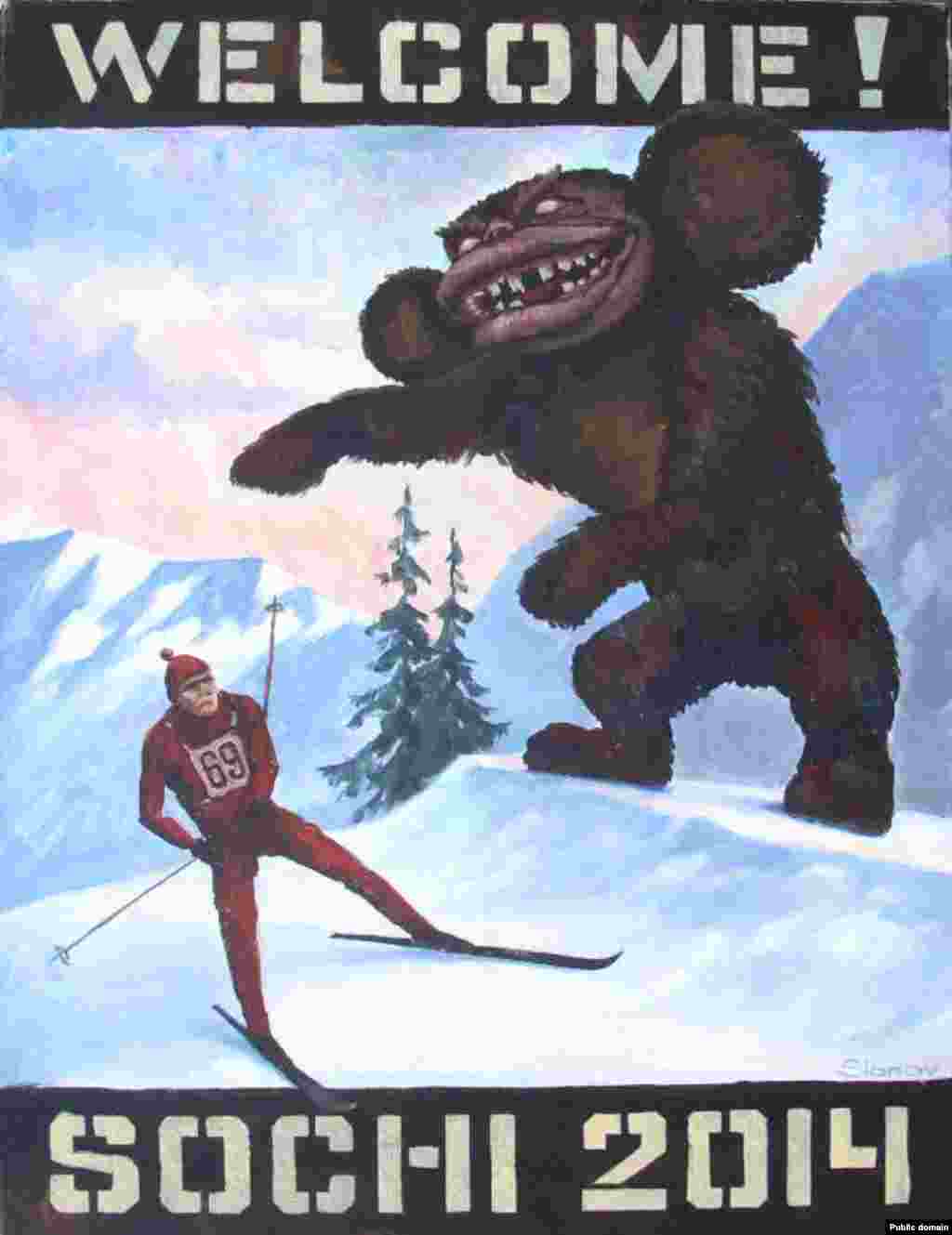 “WELCOME! SOCHI 2014” исемле сәяси карикатура рәсемнәре белән җәнҗал чыгарган Василий Слонов Сочи Олимпия уеннарын пиарлаучы түрәләрне булдыксызлыкта гаепләсә, Слоновның үзенең киң җәмәгатьчелеккә танылуына нәкъ менә югары түрәләр сәбәп булды. “Пермьдәге ак төннәр” фестивалендә Сочига багышланган карикатуралар күргәзмәсе белән чыгыш ясаучы Слонов рәсемнәрен Универсиада уты Пермьдә тукталган вакытта шәһәргә килгән түрәләр күреп алган һәм бу турыда Русия президенты идарәсенә хәбәр иткән. Шуннан соң өлкә түрәләре күргәзмәне тиз арада ябып карикатураларны кеше күзеннән яшереп куйды һәм “хатаны төзәтү” эшенә кереште.