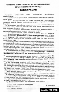 Бу көн бик абруйлы көн, әмма аңа бүгенгә кадәр тиешле бәя бирәлгәне юк. Менә шушы декларация Татарстанны автономия статусыннан тагын бер баскычка югары күтәрде. Ул чордагыча әйтсәк, РСФСР эченнән чыгып, Советлар берлегенә керде, союздаш республика булды.