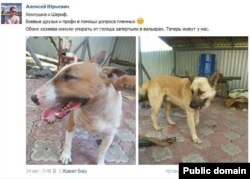 Новороссия "батырлыкларына" Мильчаков ике ел элек үк әзерләнә башлаган. Бу фотода ул пычак белән башын кисеп алачак көчекне күрсәтә. Пычак Мильчаковның кулында.