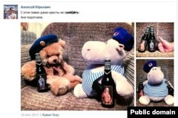 ВКонтактедагы бу фотода Алексей дус кызыннан бүләк буларак алган сыралар белән дә мактана. Уң яктагы фотода ул Адольф Һитлер сурәте төшерелгән сыраларның шәп булуын күрсәтә.
