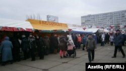 Чаллыда Беларуста җитештерелгән тауарлар ярминкәсе бара. Ит-казылык бәяләре югарырак булса да, халык бу ризыкларны чиратларга тезелеп ала.