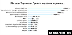 – Апельсин-мандарин, җәй көнне помидор, балык, ит ризыклары. Помидор бик сыйфатлы булмаса да, ул мондагы бәяне билгели. Гомум бәягә үз өлешен кертә. Ит ризыклары, балык хәзер Европадан кертелмәгәч, Төркия моннан файдалана ала иде. Кипкән җимешләр бар, әмма кыйммәт булу сәбәпле, Русиягә бик үк үтеп кермәгән. Ә Төркиядә тукыма әйберләре сыйфаты белән Европа дәрәҗәсендә эшләнә.