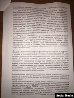 Кырымтатар телендә чыгучы "Йылдыз" журналы һәм "Янъы дюнья" газетында эшләүчеләр Русия президенты, Кырым җитәкчелеге, Русия журналистлар берлеге, Русиядә Кеше хокуклары вәкиле һәм Кырымтатар Милли мәҗлесенә ярдәм сорап мөрәҗәгать итте.