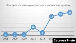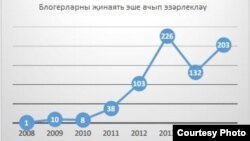 Интернет кулланучыларны җинаять эшләре ачып эзәрлекләүдән кала, Татарстанда сайтларны тыю һәм интернет провайдерларны штрафларга тарту артуны да билгеләп үтә хокук яклаучылар.