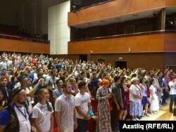Җыелыш "Туган тел" җырын башкару белән тәмамланды. Яшьләр моннан соң Арчага юл ала.