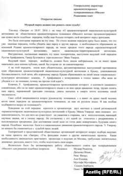 “Телеканал болай да күп булмаган тамашачылар алдында үзенең тапшырулары белән үз дәрәҗәсен төшерә” диелә ачык хатта. "Мәскәүдән Арифджановны чакыртып, аңа юл чыгымнарын түләп утырганчы, яшь кадрлар үстерерү урынлы булыр иде" диелә кырымтатар милли хәрәкәте ветераннары имзалаган хатта.