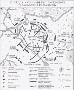 – Шушы вакыттан башлап урыс дәүләте башка ысул күрми, бары тик хәрби яу белән Казан ханлыгын алып булачагын уйлый башлый. Бу хәрби яуның бөтен аспектлары уйланыла. 1552 елның июлендә бу гаскәр төрле колонналар белән Казанга таба юлга чыга. Зөя каласында соңгы тукталыш ясап өч көн ял иткәннән соң, алар өч көн Иделне кичеп Казанны чолгап алалар.