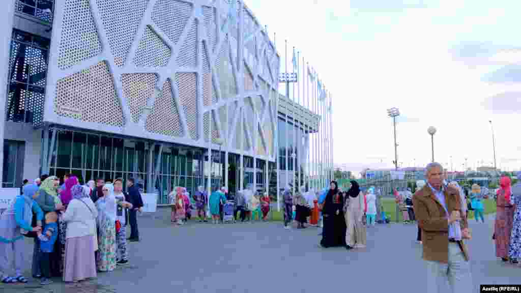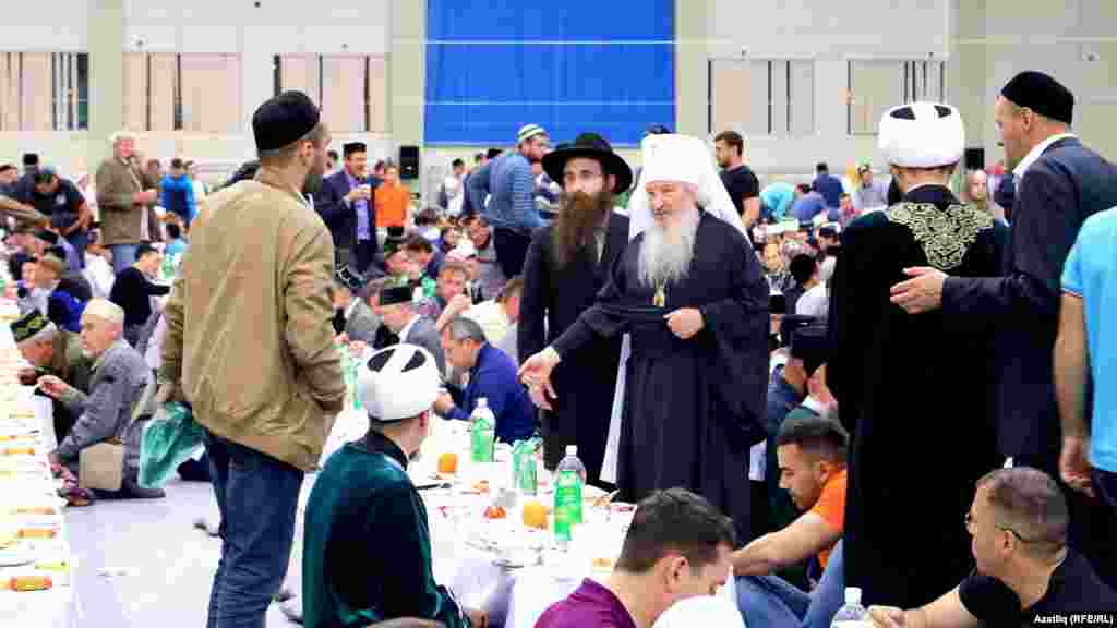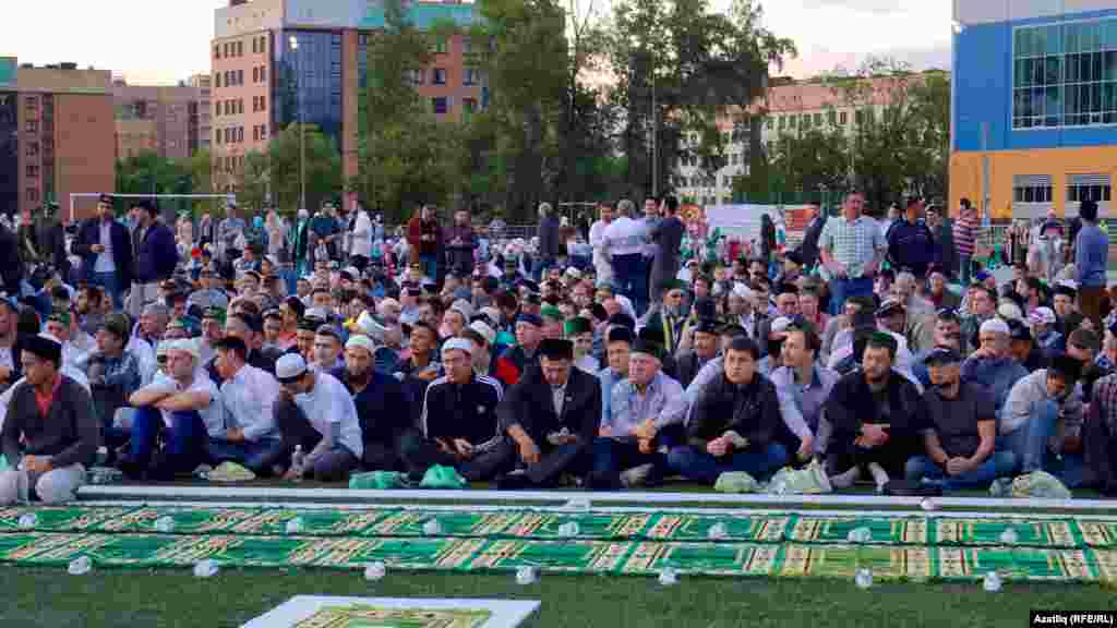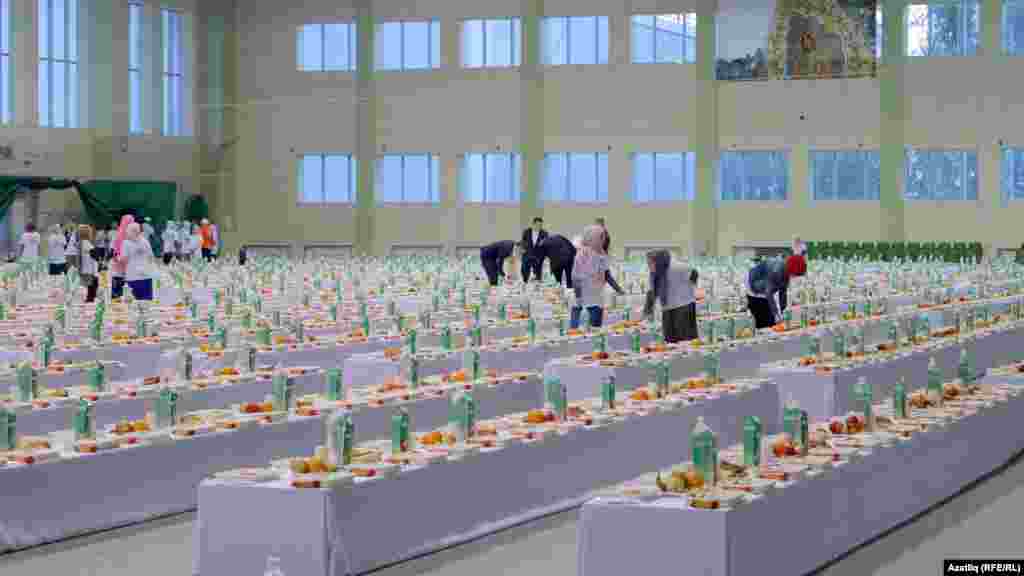 15 июнь Казанның теннис академиясендә 10 меңләп мөселман бергә авыз ачты. Азатлык хәбәрчесе бишенче тапкыр уздырыла торган зур ифтар чарасында түрәләрнең халык белән бергә ни белән сыйланганын күзәтте, министрлардан ураза тоту авырмы-юкмы дип кызыксынды.