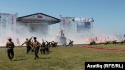 7. Сабантуй мәйданы тирәсендә корылган милли утарлар арасында башкорт һәм казакъ тирмәләре дә бар иде. Өлкә җитәкчелеге берничә башкорт тирмәсе дә куярга күрсәтмә биргән. Бу – соңгы еллардагы таралган татар Сабантуен милләтара бәйрәм итеп күрсәтү сәясәте.