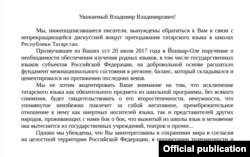 Татарстан язучыларының Путинга мөрәҗәгате