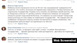 Idel.Реалии чыгарган бер мәктәп укучысының видеоязмасы комитет сәхифәсенә куелгач, аның астында күпләп фикер белдерү башланган. Шунда комитетның актив әгъзасы булган төркем идарәчеләренең берсе Инесса Гудочкина татар сыйныфларында балаларның "суверенлык белән баш миләрен юалар", "мәктәпләрдәге милли сыйныфларны таратырга кирәк" дип белдергән.