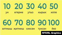 Двадцать – егерме, двадцать один – егерме бер... То есть формула следущая: назвается цифра 20 (егерме), затем добавляется нужная цифра. Потренируемся?