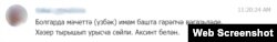 Тарихи Болгар шәһәрендә эшләп килүче Ак мәчеткә җомга намазына килгән Рөстәм (исеме үзгәртелде) вәгазьнең татарча алып барылмавына аптыраган. Ул моңа канәгатьсезлек белдереп Телеграм каналындагы бер төркемдә язды.