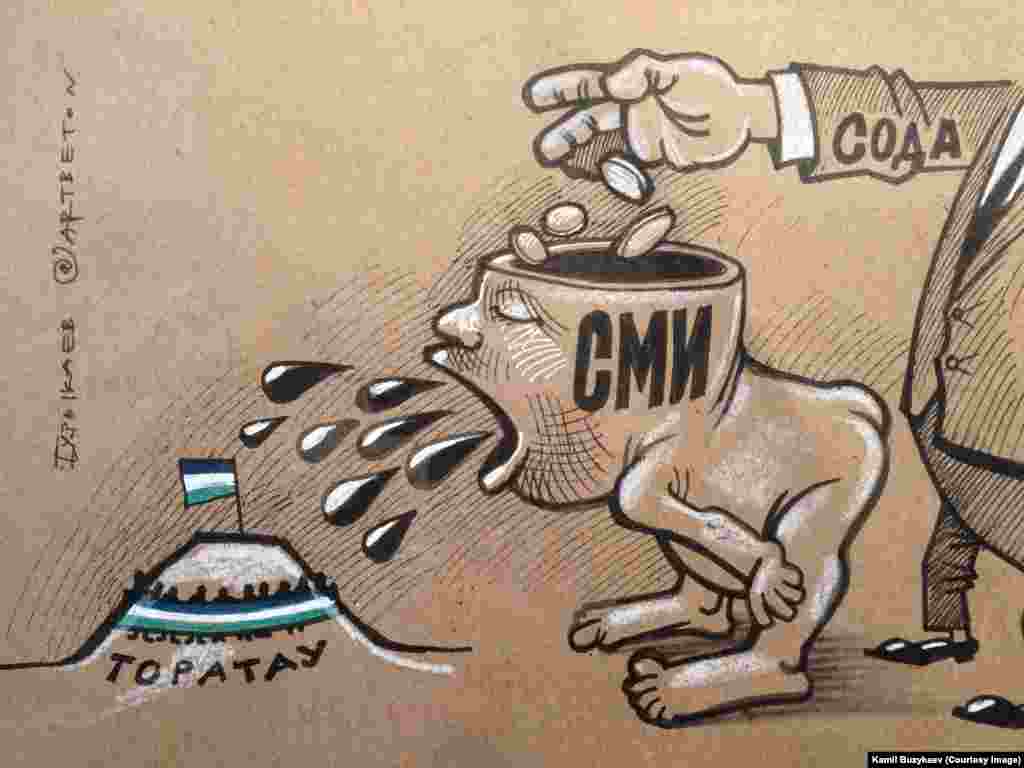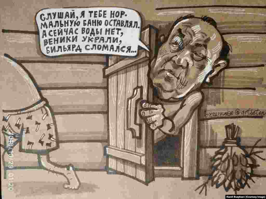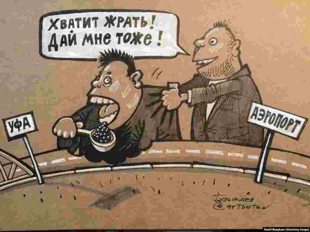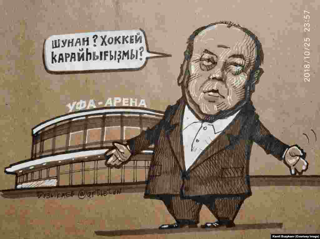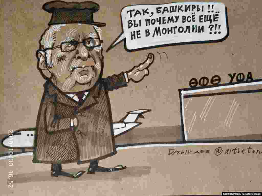 Башкортстанда яшәүче рәссам Камил Бузыкаев сәяси темаларга карикатурлар ясап танылды. Бу көннәрдә Уфада аның күргәзмәсе уза.