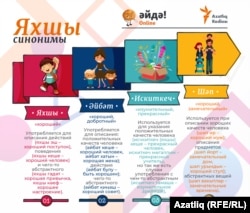 - Әйбәт (хороший, добротный) в татарском языке употребляется для описания: положительных качеств человека (әйбәт кеше – хороший человек, әйбәт хатын – хорошая жена); действия (әйбәт булу – быть хорошим); чего-то абстрактного (әйбәт киңәш – хороший совет).