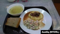 Секцияләр башланыр алдыннан кунакларны төшке аш белән сыйладылар. Делегатның төшке ашы менә шундый. Ризыклар хәләл, диделәр безгә оештыручылар.
