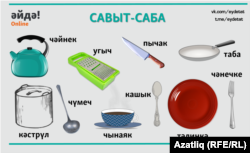 Дуслар, татары часто говорят “Ашар өчен яшәмибез, яшәү өчен ашыйбыз!”, а именно “Живем не ради еды, а едим ради жизни”. Согласны? Мы подумали, что нам надо выучить больше слов на тему еды. Потому что того, что мы учили раньше, нам уже не хватает.