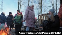 Күп сөйләдек, башкалар да сөйләсен, намаз вакыты кала дип ике татар апасы өйлә намазын укыды. Урамда, салкында. Алар гаделлек өстен чыксын иде дип дога кылабыз дип аңлата.