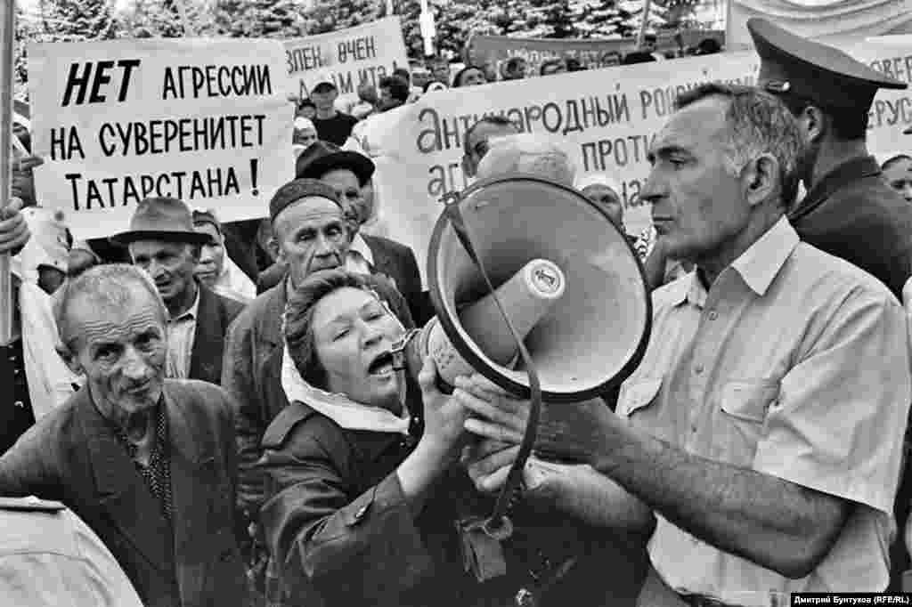 Татарстан халкының республика суверенитеты өчен күтәрелеп Казандагы Ирек мәйданына чыгуына, Татарстанның суверенитет декларациясе кабул ителүгә 30 ел тулганда фотохәбәрче Дмитрий Бунтуковның шул чорда төшергән архив фотоларын тәкъдим итәбез. Дмитрий Бунтуков – фотограф, рәссам. Казанда туган. 1990нчы елларда ирекле фотограф. “Татарстан яшьләре”, “Азат хатын” басмалары белән хезмәттәшлек итте. Соңгы елларда “Ватаным Татарстан” газетында фотохәбәрче булып эшләде.