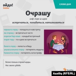 Событие номер один для влюблённых – это свидание. На татарском оно называется очрашу, переводится также как встреча. Очрашуга чакыру – позвать на свидание. Очрашудан баш тарту – отказаться от свидания или встречи.