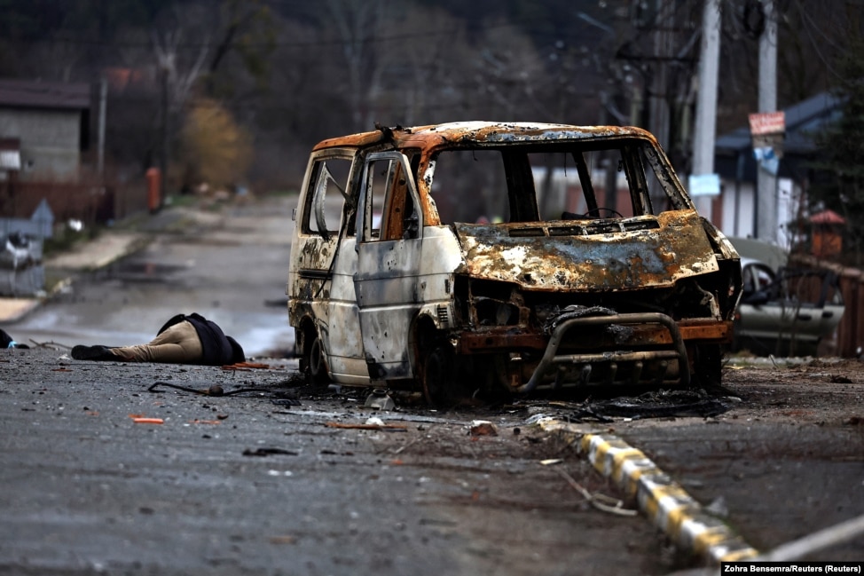 Reuters, France Press агентлыклары һәм башка медиалар төшергән фотолардан күренгәнчә, Киев янында урнашкан, 35 меңләп кеше яшәгән Буча шәһәре урамнарында мәетләр ята. Кайберләренең куллары бәйләнгән.