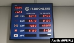 "Газпромбанк"та да "тере" доллар сатып алырга мөмкин, ә евро юк. Долларның бәясе, күләменә карап, 75-77 сум арасында. Мисалга, 3000 доллар алсаң, 76,56 сум чыга. Кимрәк булган саен, бәясе кыйммәтрәк. Иң кызыгы: банкка керү юлындагы таблодагы саннар чын сату бәяләре белән туры килми. Таблода кыйммәтрәк сумма куелган.
