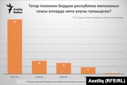 2017 елда 74 бала татар теленнән бердәм республика имтиханы тапшырган булса, 2018 елда аларның аны 24кә кими. Татар теле өчен көрәшнең әле чаткылары бар, кешеләрдә ниндидер каршылык күрсәтү тырышлыгы да күзәтелә, шуңа балаларның киләчәктә татар телле белгечлекне сайлавы табигый кебек күренә. Балаларның бер өлеше татар теле укытучылары, татар журналистлары булырга тели. Шул юнәлештә КФУга белем алырга теләүчеләргә татар теленнән дә имтихан бирү кирәк, бу өстәмә балл булып санала. КФУның Татаристика бүлеге һәр баланы белде, исәптә тоты. Әмма белгечәр ул чакта ук кысыр өметләр белән яшәргә кирәкми диде, прокуратурының мәктәпләрне пыр туздыруының кайтавазы каты булуы берничә елдан күренәчәк дип кисәтте. Шулай булды да. 2019 елда татар теленнән БРИны тапшыручылар 15 кешегә калды, 2020 елда татар телен нибары 9 бала сайлады. 2021 елда пандемия аркасында аны тапшыру каралмады. Ә быел 4 миллионнан артык халкы булган бөтен республикага бер кеше генә табылды.