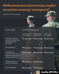 Чәршәмбе кичкә таба Татарстан хәрби комиссариатының мобилизация турында фәрманы чыкты. "Татарстанда даими яшәүче, мобилизация күрсәтмәсе булган яки хәрби комиссариаттан шәхси повестка алган запастагы барлык офицер, прапорщик, мичман, сержант, старшина, солдат һәм матросларга күрсәтелгән вакытта һәм пунктка килергә, ә шәхси повестка алмаган очракта мобилизация күрсәтмәсендәге вакытта һәм пунктка килергә боерам", диелгән фәрманның беренче параграфында. Бернинди яшь чикләүләре күрсәтелмәгән.