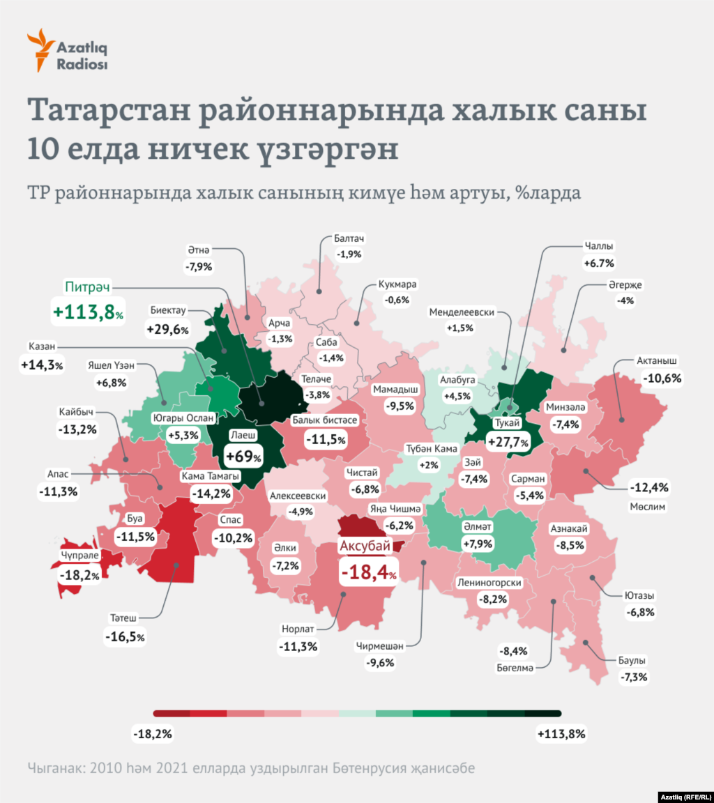 2021 ел җанисәбе шуны күрсәтте: халык Татарстанның авыл районнарыннан йә зур шәһәрләргә, йә зур шәһәр янындагы районнарга күченә.