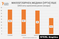 — Бу җанисәп татарның картаеп баручы милләт булуын тагын бер кат күрсәтте. Медиан яшенә карасак, татар белән урыс бер дәрәҗәдә – 41,6 һәм 41,7. Башкортларда бу күрсәткеч яхшырак – 40. Чеченнар яшь милләт – 27,2. Бүген татарда хезмәт яшен узганнар милләтнең 26,6 процентын тәшкил итсә, балалар һәм яшүсмерләр 16,8 процент кына. Бер ун елдан татарлар табигый төстә ун процентка кимү куркынычы алдында торамы?