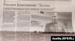 "Биектау хәбәрләре" газеты "Рәсим Баксиков: Безне онытмавыгыз өчен рәхмәт" дигән мәкаләдә (27 сентябрь) "Алёша" танкында украин хәрбиләрен күпләп үтергән өчен Русия герое исеме алган Рәсим Басиков белән очрашу турында зурлап язган.