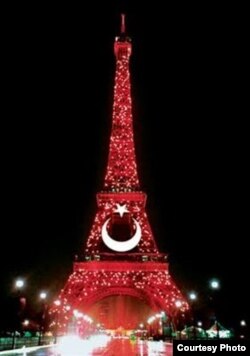 Törkiä prezidentı Abdulla Gülneñ kilüenä Eyfel manarası törek bayrağınıñ ike töse - qızıl häm aq belän bizälde. Şulay da säfärneñ eçtälege başqa töstä däwam itte. Mäğlüm bulğança, Fransia Törkiäneñ Berlekkä äğzalıq mäsäläsendä gel kirtä bulıp tora.