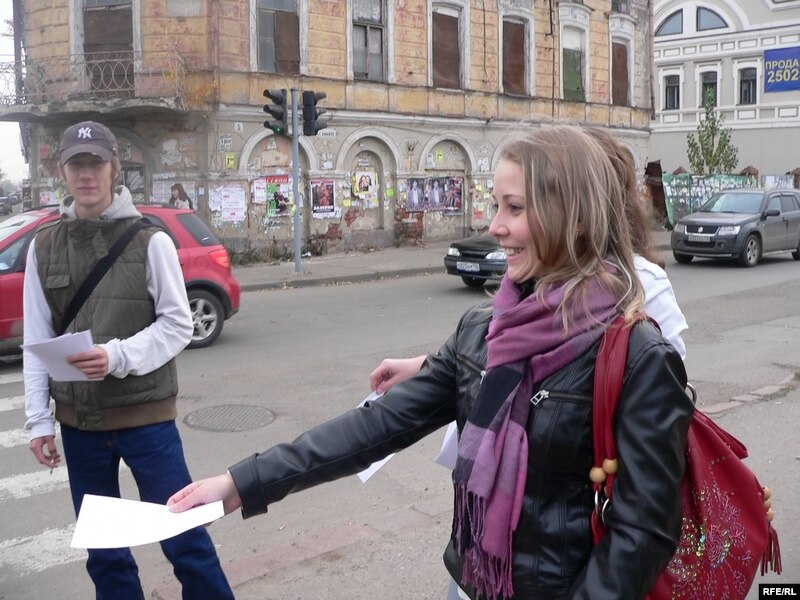 Пикетка килүче студент кыз Айназ 2013 елда Казанда уздырылачак Универсиада алдыннан шәһәрдә тарихи биналарга игътибар бирелмәвен әйтә.